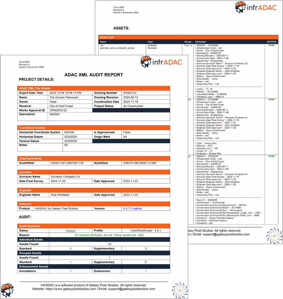 The management of ADAC XML data has long been a challenge for councils, utilities, and consultants. Existing tools often rely on outdated software or fragmented processes that create inefficiencies and increase the risk of non-compliant submissions. To address these challenges, Galaxy Pixel Studios has released infrADAC CAD and infrADAC Map, two purpose-built applications designed to modernise the way organisations create, validate, and work with ADAC XML.